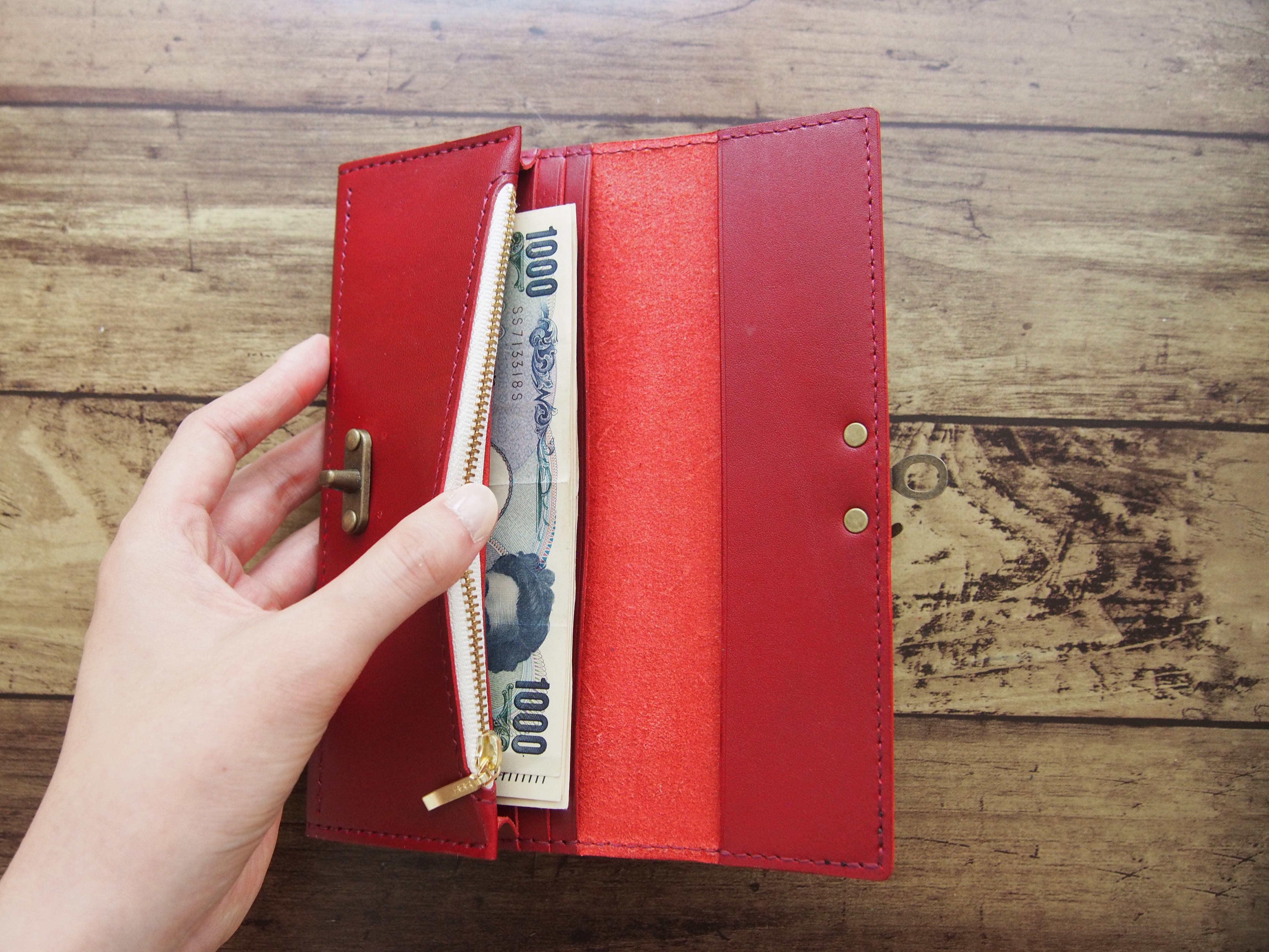 国産栃木レザーを使用した、ハンドメイドのお財布です。